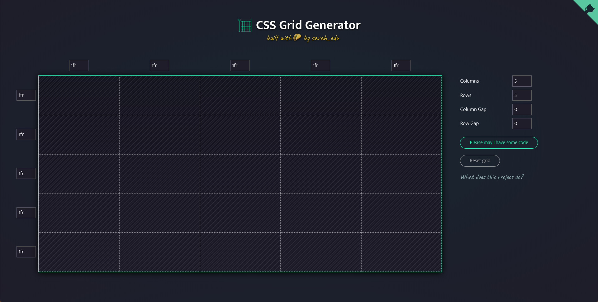 The user interface of CSS Grid Generator is beautiful, clean and easy to use. I love that the entire project was written in Vue and hosted on Netlify, 2 of my favorite technologies.